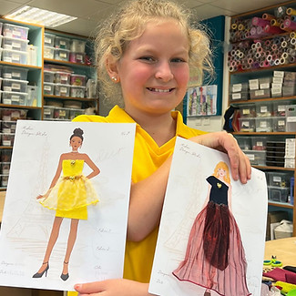 Delightful creative programme for primary grades that introduces children to fashion through the full creative process. Our weekly classes cover creative thinking, turning inspiration into original designs, documenting ideas, sketching final pieces, selecting expressive fabrics, and sewing projects together. Young designers explore colours, textures and basic hand and machine sewing to make doll outfits, bags and plush toys. Guided instruction builds fine motor skills, patience and confidence while students create projects to share in a warm, supportive environment.
